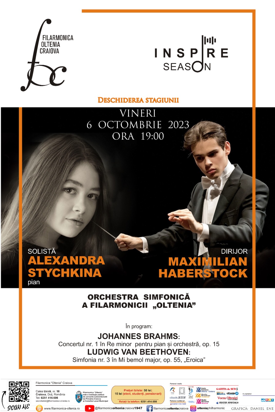 Va fi un concert dedicat pasiunii, talentului și emoției muzicale. Cei doi tineri artiști invitaţi, dirijorul MAXIMILIAN HABERSTOCK şi pianista ALEXANDRA STYCHKINA, alături de Orchestra simfonică a Filarmonicii “Oltenia” vor încânta prin expresivitatea şi inspirația lor specială.